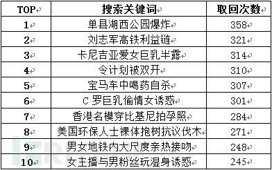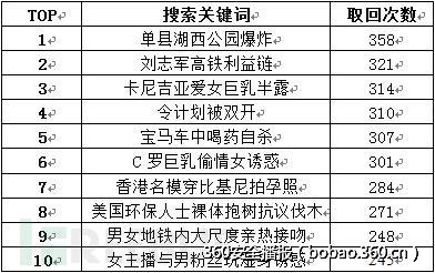 下表给出了测试过程中,木马从服务器取回并模拟搜索次数最多的10个搜索关键词。