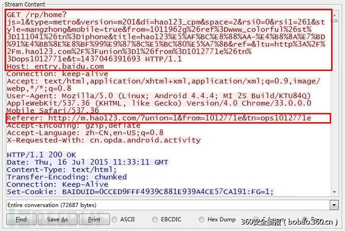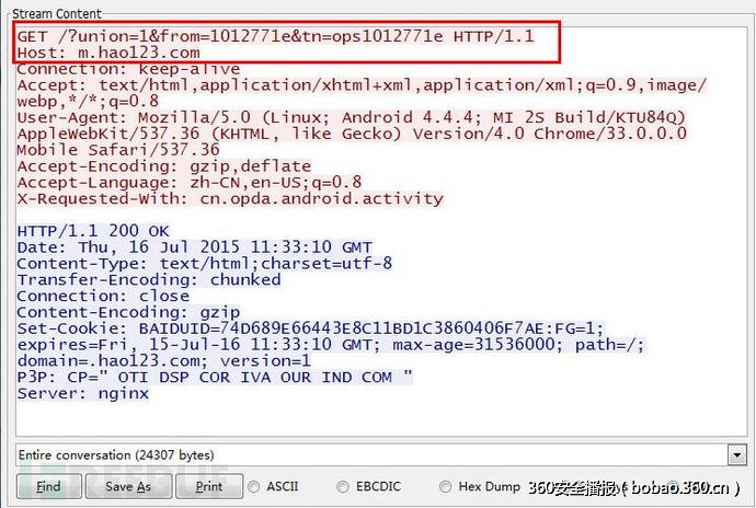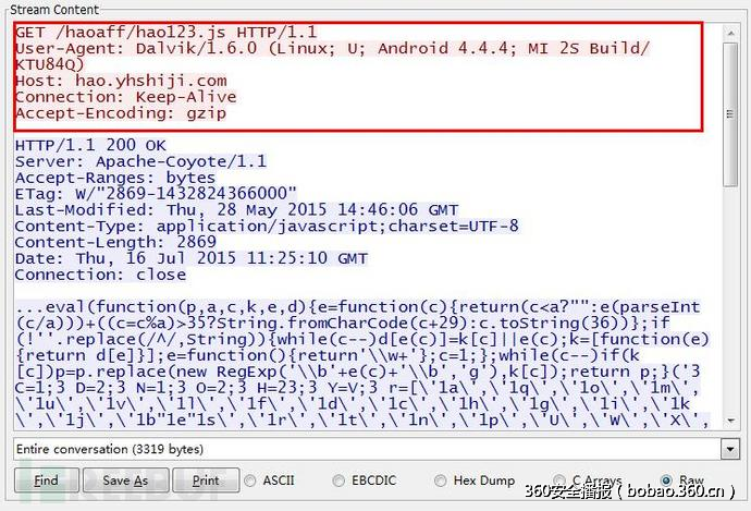 整个过程在后台执行,用户完全无感知。通过输出样本日志我们获取到加载js文件时获取的服务器内容,如下图所示: