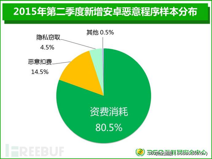 事实上,流量僵尸木马只不过是消耗用户手机流量,为网站制造虚假请求量的众多手机木马中的一个而已。根据360互联网安全中心发布的《2015年第二季度中国手机安全状况报告》数据显示,在2015年4-6月截获的所有550万个安卓平台恶意程序中,通过静默访问等形式消耗用户手机流量资费的恶意程序样本多达442.8万个,占比高达80.5%。相比之下,流量僵尸木马的1000余个样本甚至仅为这一数字的0.2‰。由此可以想象由各种木马造成的虚假的移动互联网流量,其规模是何等的庞大。