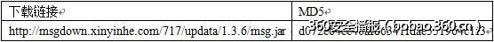 截至2015年7月13日,恶意插件msg.jar的最新版本为1.3.6,下载链接根据版本号的升级也会发生变化,该版本号MD5如下表: