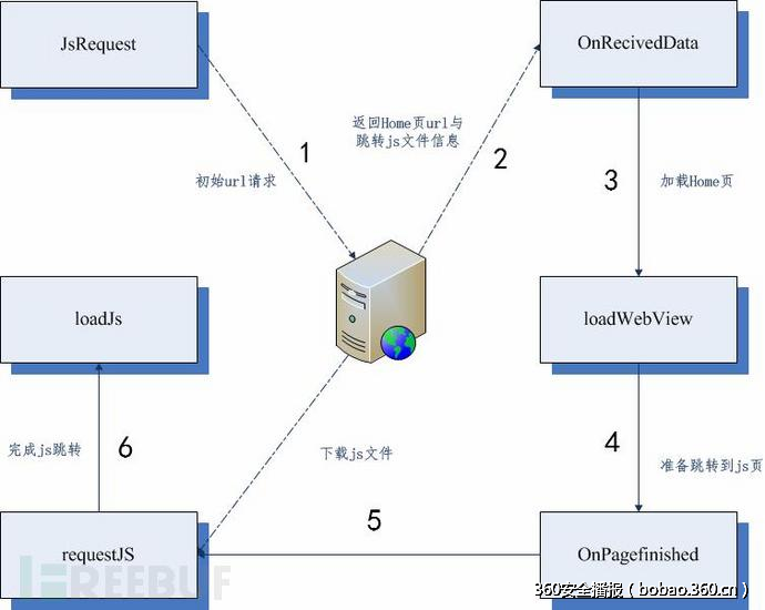 2)接收服务器返回数据,初始化home页地址及跳转页JS文件下载地址;