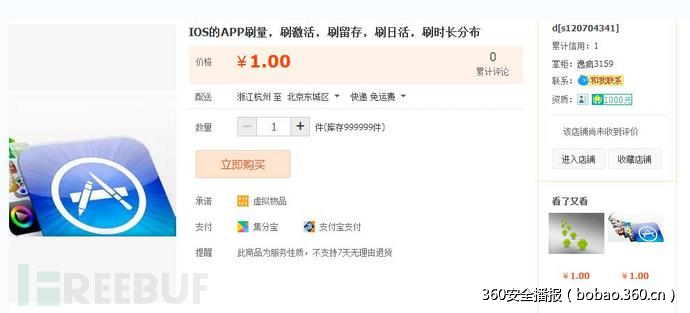 下图是某个专门给苹果iOS系统APP刷量的"宝贝"详情截图。其中给出的可刷选项更加丰富,不仅包括存留、日活(每日活跃数量)等,还可以刷时长分布这种"高级选项"。