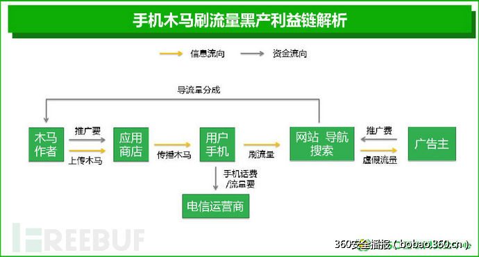 事实上,通过制作手机木马为指定网站刷流量的行为,已经形成了一条非常隐蔽的黑色产业链,其本质是拿用户的手机流量费为木马作者盈利,同时也能在很大程度上帮助被刷网站赚取更多的广告收入——这也是部分网站对某些厂商用木马帮自己刷流量行为睁一只眼、闭一只眼的主要原因。