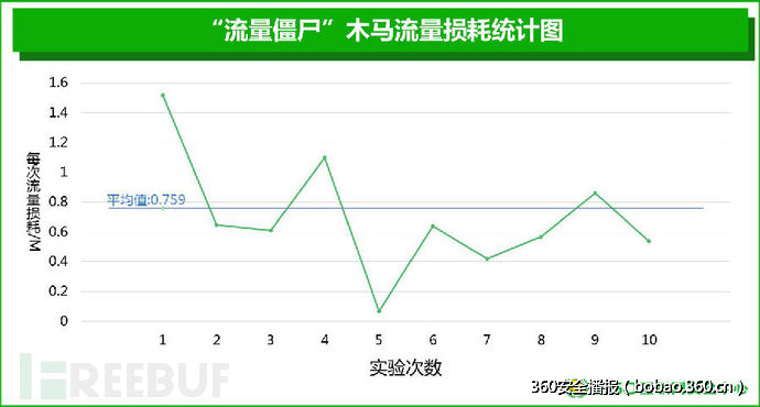 统计结果显示平均每次刷量的流量损耗为0.759M,也就是用户每解锁一次屏幕损耗约0.759M流量,每100次解锁便会损耗约75.9M流量。