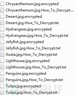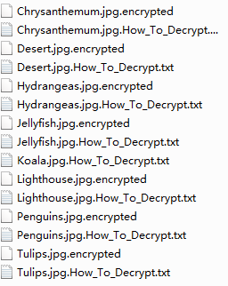 一个感染了TorrentLocker勒索软件的文件夹内容如下图: