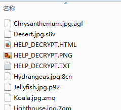 CTB_Locker勒索软件同样于2014年开始传播,被CTB_Locker勒索软件加密的用户文件具有相同的扩展名,均为随机的 7个字母文后缀。一个被CTB_Locker勒索软件加密的用户文件夹如下: