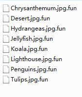 截止至笔者书写此章节是,Jigsaw勒索软件出现了2个版本,本小节分析的Jigsaw 勒索软件为第一个版本,其特征是被加密的用户文件以.fun为后缀。一个被Jigsaw勒索软件加密的文件夹如下: