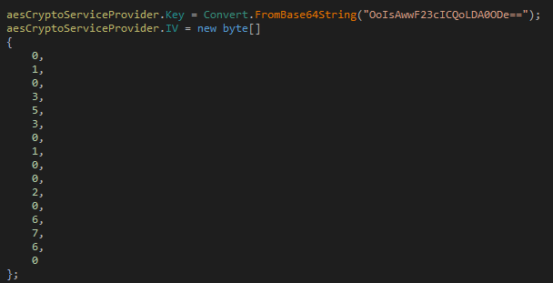 Jigsaw勒索软件选用AES算法作为其加密算法,其加密密钥和初始向量被编码存储于样本中: