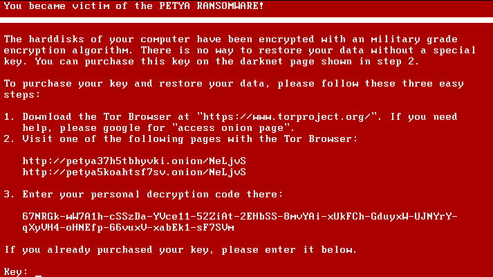 其内容主要是提示用户感染了Petya勒索软件并索要赎金。